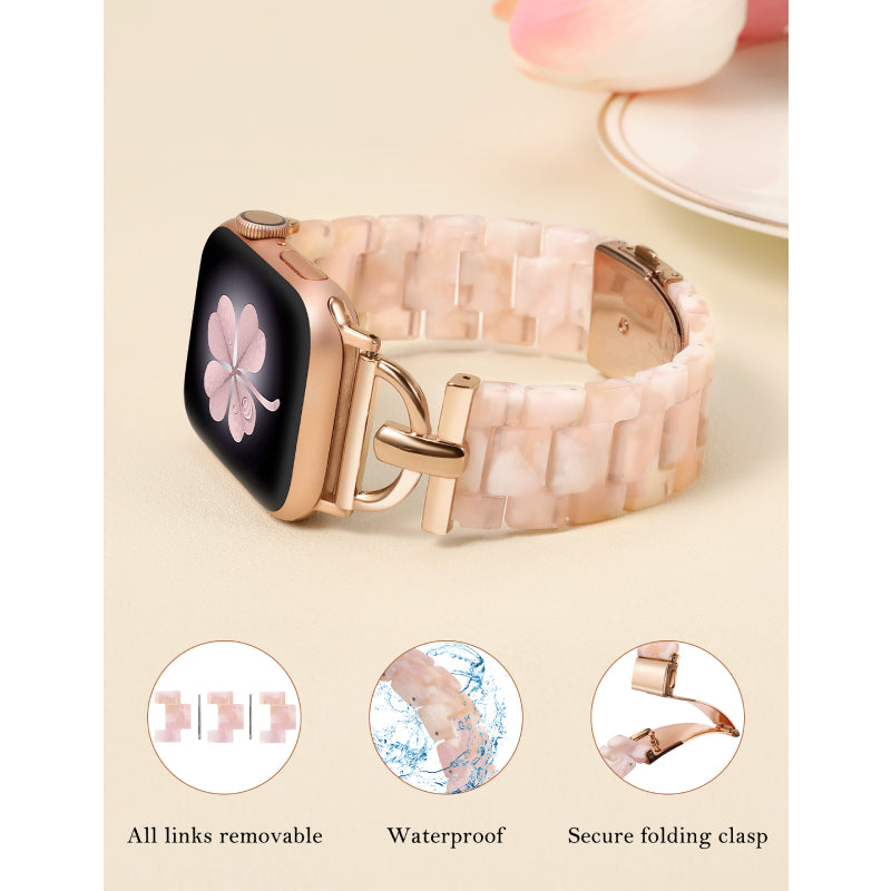 - 【Lightweight & Waterproof】Compatible with apple watch bands for women only 1.3oz, does not cause any burden to your wrist, very comfortable to wear. NO need to take off your watch when washing, swimming and snorkeling, but not scuba diving. Resin material will never worry about rust.